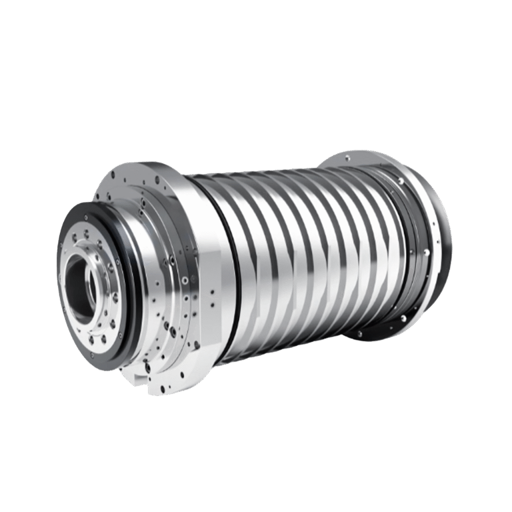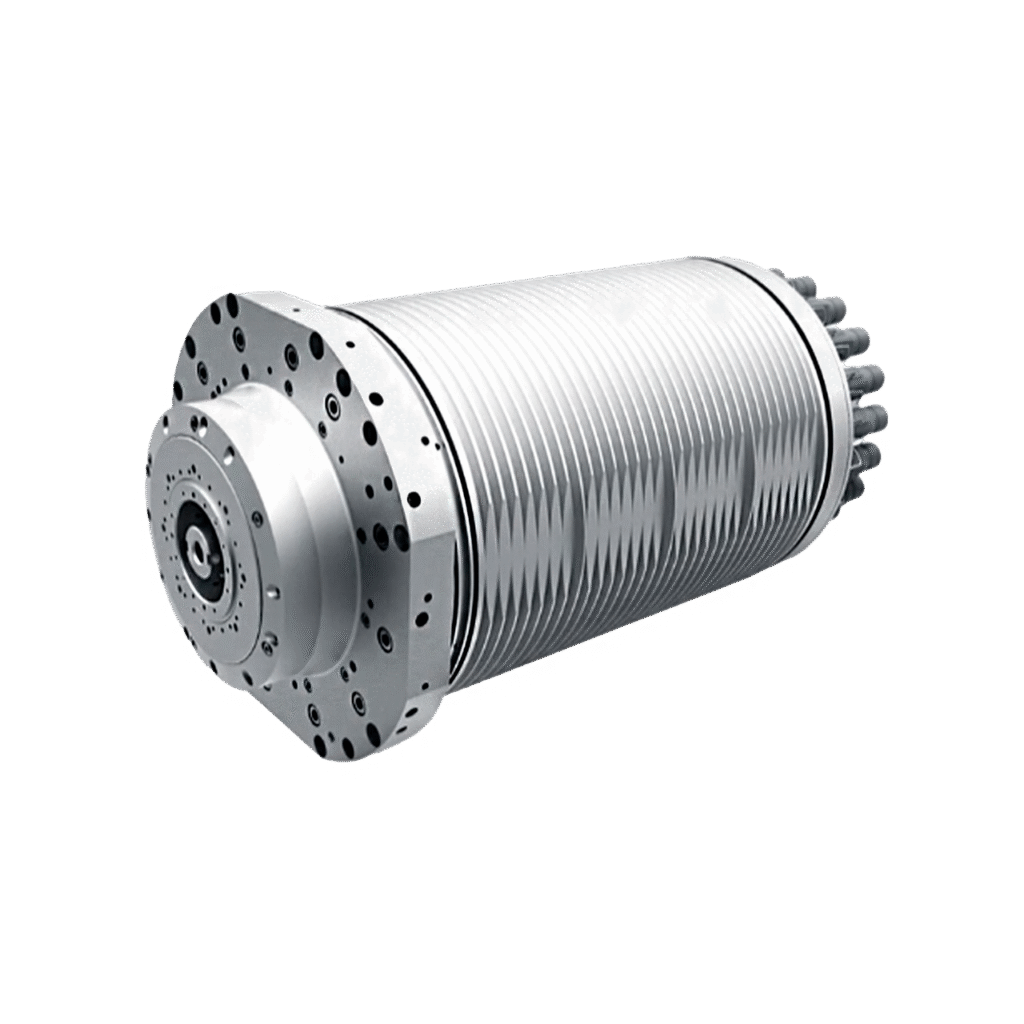 Integra una caja de engranajes que amplifica el par mecánico sin perder precisión. Es el corazón de las máquinas 5 ejes que deben atacar materiales críticos en múltiples orientaciones.