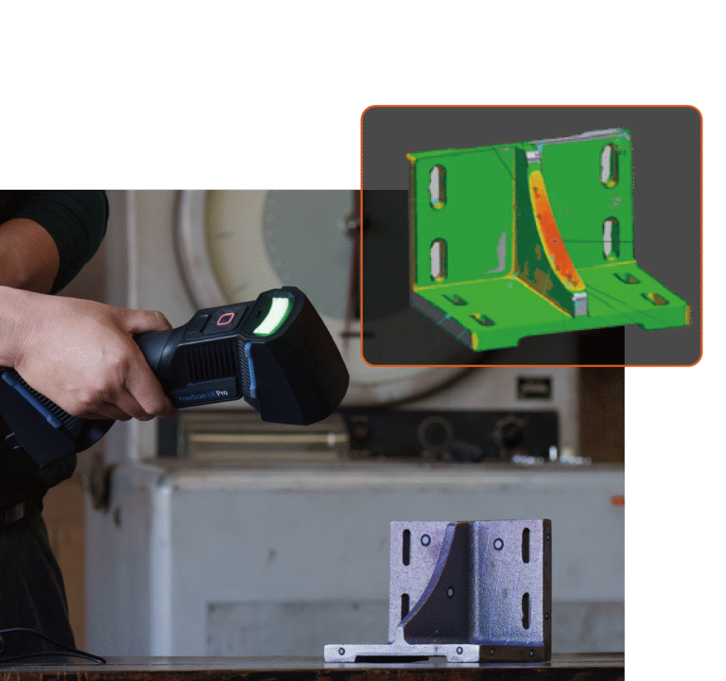 Con escáneres 3D de metrología, es posible capturar todo el volumen de la pieza en cuestión de minutos, comparar automáticamente contra el modelo CAD, generar informes completos y liberar producción más rápidamente.
