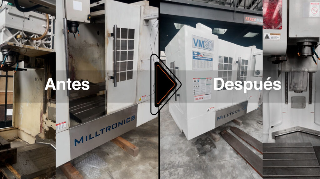 Revitalizamos una fresadora CNC Milltronics VM20 con retrofit total: control Milltronics 8200, mantenimiento mecánico y eléctrica y renovación estética.